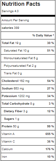 | TOTAL: | 1,312 | 25g | 90g | 71g | 573mg | 888mg | 5g | 9g |